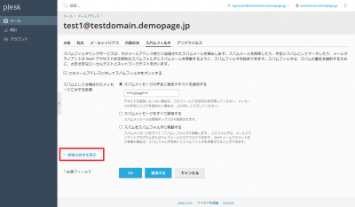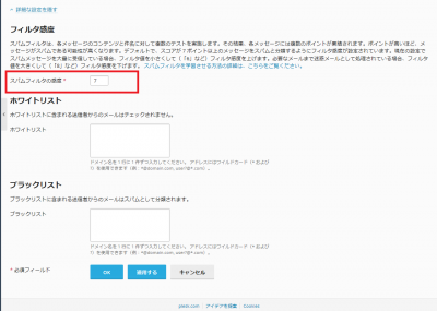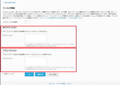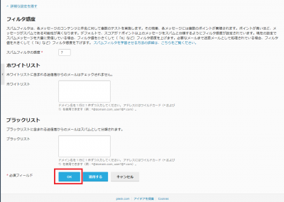 下記の操作方法についてはスパムフィルタ設定の画面を表示した状態から