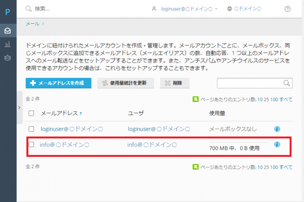 「OK」をクリックし「メールアドレス一覧画面」へ移動します。