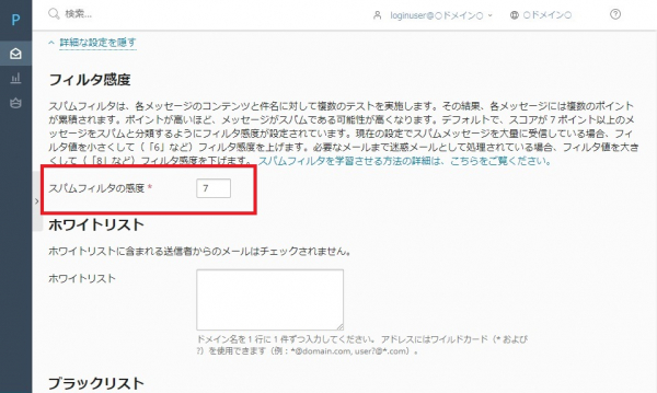この数値によって、スパム判定の強弱をつけます。