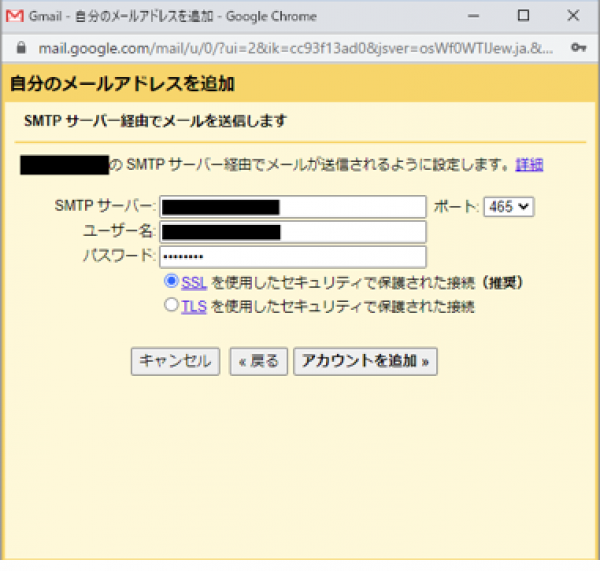 このように設定し「アカウントを追加」をクリック